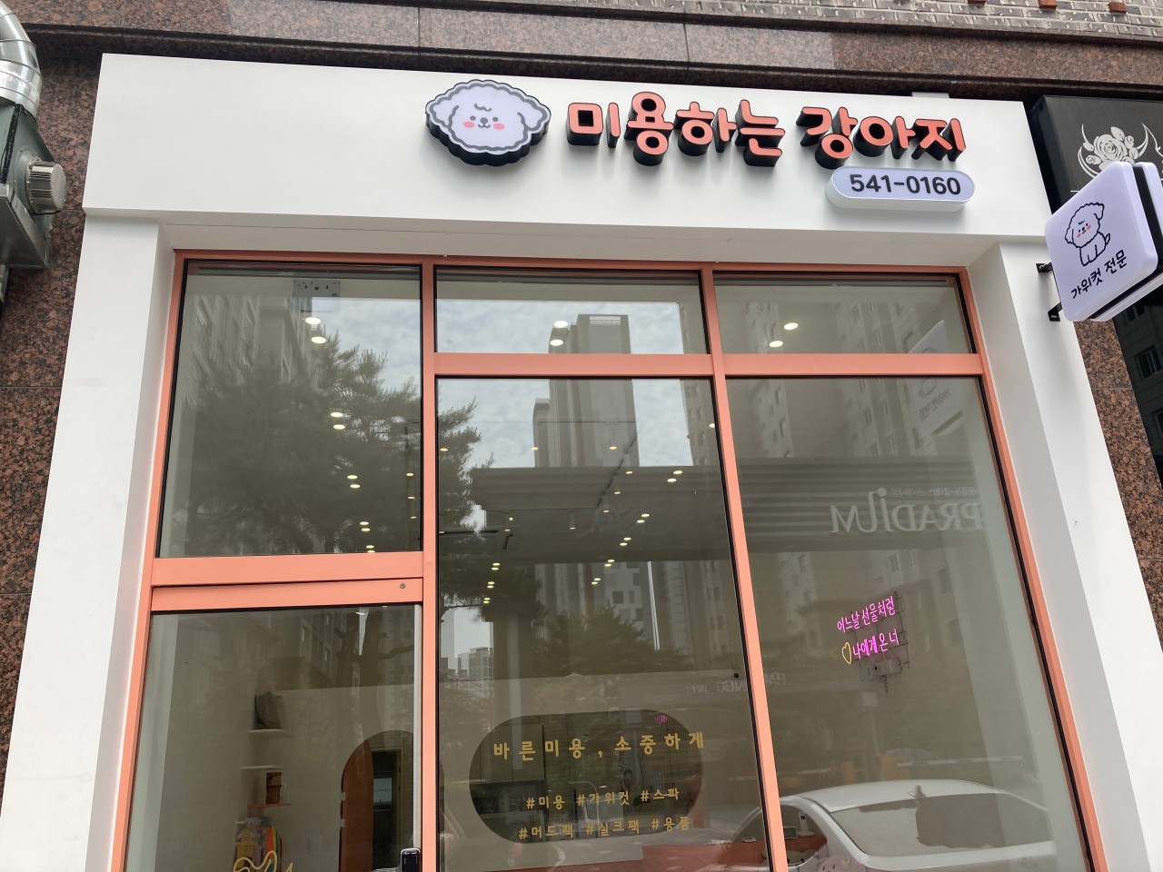 주소: 대전 서구 관저남로12번길 7-4 (우)35383지번: 관저동 1569-1길찾기: 중흥 S클래스프라디움 정문 맞은 편 (길찾기 링크확인)영업시간: 매일 09:30~19:00 일 정기휴무연락처: 042-541-0160/0507-1400-0161 미용하는 강아지은 반려견전문미용샵(가위컷전문, 스타일컷...