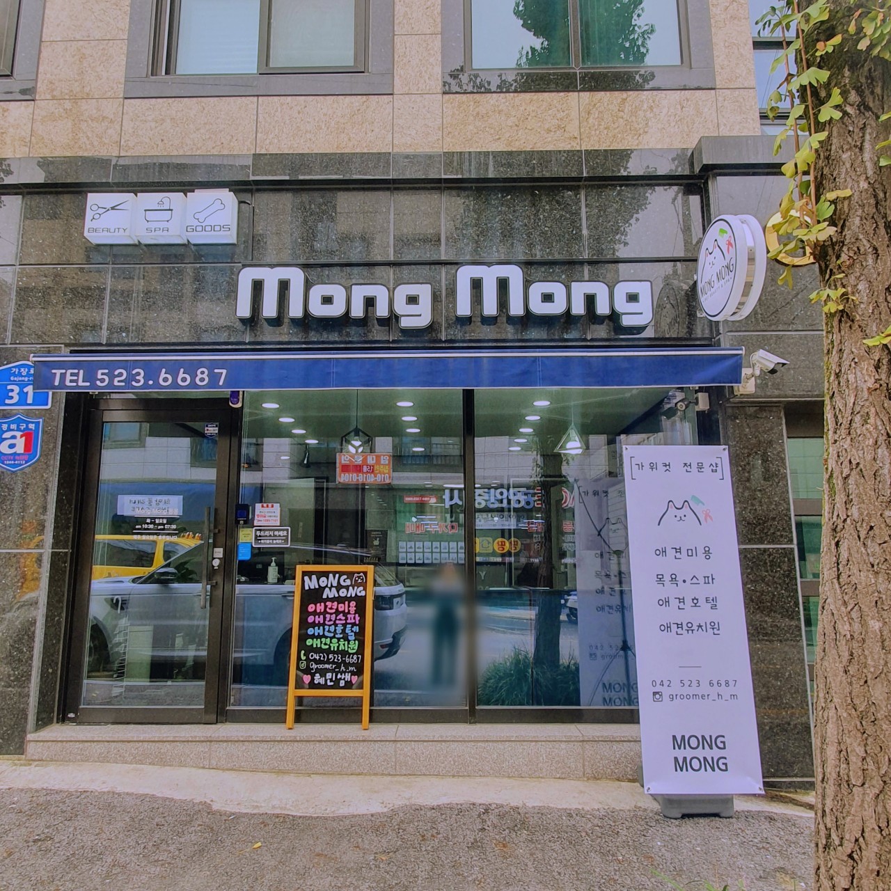 주소: 대전 서구 갈마로 77 1층 (우)35272지번: 갈마동 394-18길찾기: (길찾기 링크확인)영업시간: 매일 09:00~18:00 일 정기휴무연락처: 042-534-9393/0507-1497-9393 밝고 쾌적한 인테리어!!신뢰를 바탕으로 한 오픈형 애견미용실!!애견미용, 호텔, 고양이, 대형견...