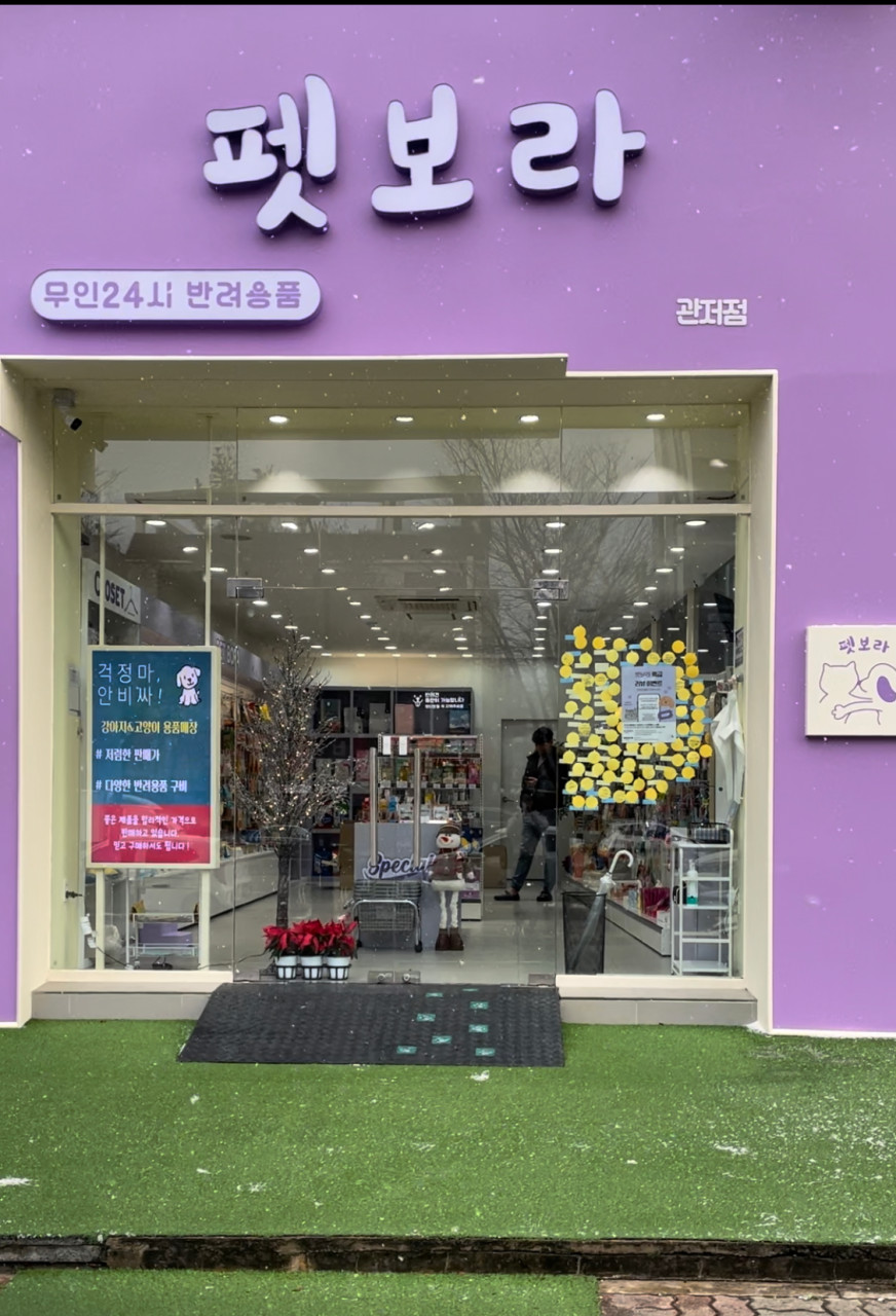 주소: 대전 서구 관저동로 84 (우)35379지번: 관저동 1413길찾기: 김밥천국 맞은편, 다복떡방 옆 보라색 매장 (길찾기 링크확인)영업시간: 매일 00:00~24:00연락처: 0507-1358-210024시 무인 반려용품점 펫보라유인매...